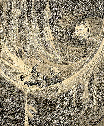 Wir bieten Ihnen eine handgefertigte Reproduktion auf Leinwand des berühmten Kunstwerks 'Ich Spindelvevet' von Theodor Severin Kittelsen, aus dem Reproduktionsmuseum.