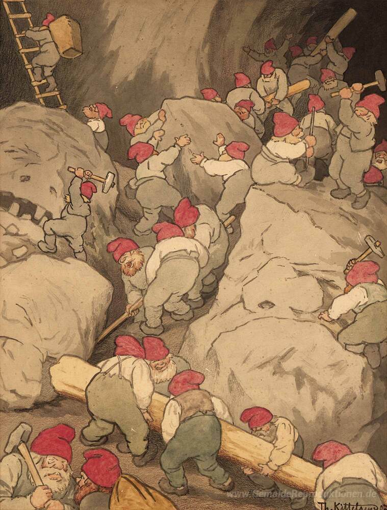 Wir bieten Ihnen eine handgefertigte Reproduktion auf Leinwand des berühmten Kunstwerks 'Ich Tomtegruvan' von Theodor Severin Kittelsen, aus dem Reproduktionsmuseum.