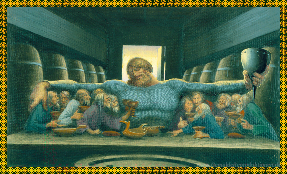 Wir bieten Ihnen eine handgefertigte Reproduktion auf Leinwand des berühmten Kunstwerks 'Ilja Muromez und Bettler Taverns' von Konstantin Vasilyev, aus dem Reproduktionsmuseum.