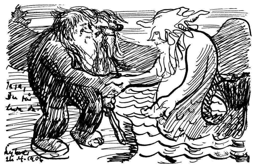 Willkommen in der Welt der Ölgemälde, wo jedes Kunstwerk eine Geschichte erzählt und Emotionen weckt. Unser Highlight, das Meisterwerk Ja Ja Du Faar Leva Da von dem renommierten Künstler Theodor Severin Kittelsen, fängt die Faszination der nordischen Mythologie ein. Kittelsen, bekannt für seine einzigartigen Darstellungen der Natur und mystischen Elemente, nutzt eine Kombination aus lebendigen Farben und feinen Details, um eine Atmosphäre von Zauber und Anziehung zu schaffen.
