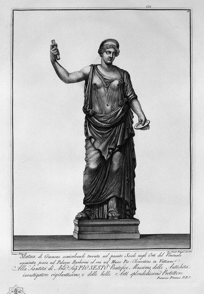 Wir bieten Ihnen eine handgefertigte Reproduktion auf Leinwand des berühmten Kunstwerks 'Juno' von Giovanni Battista Piranesi, aus dem Reproduktionsmuseum.