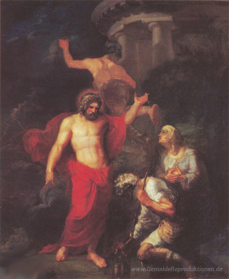 Wir bieten Ihnen eine handgefertigte Reproduktion auf Leinwand des berühmten Kunstwerks 'Jupiter und Merkur, in Form von Gast Pilger Philemon und Baucis' von Orest Kiprensky, aus dem Reproduktionsmuseum.