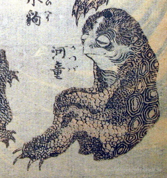 Wir bieten Ihnen eine handgefertigte Reproduktion auf Leinwand des berühmten Kunstwerks 'Kappa' von Katsushika Hokusai, aus dem Reproduktionsmuseum.
