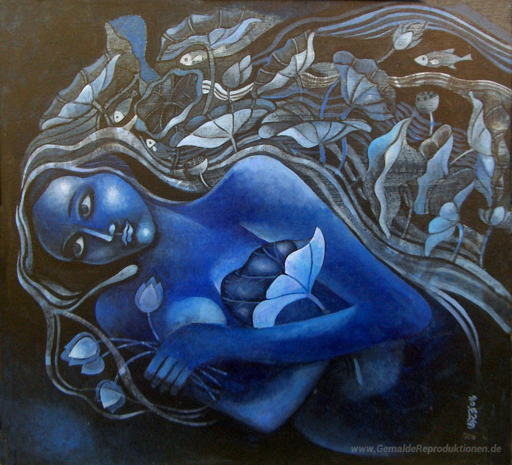 Wir bieten Ihnen eine handgefertigte Reproduktion auf Leinwand des berühmten Kunstwerks 'Lotus-Mädchen-' von Jahar Dasgupta, aus dem Reproduktionsmuseum.