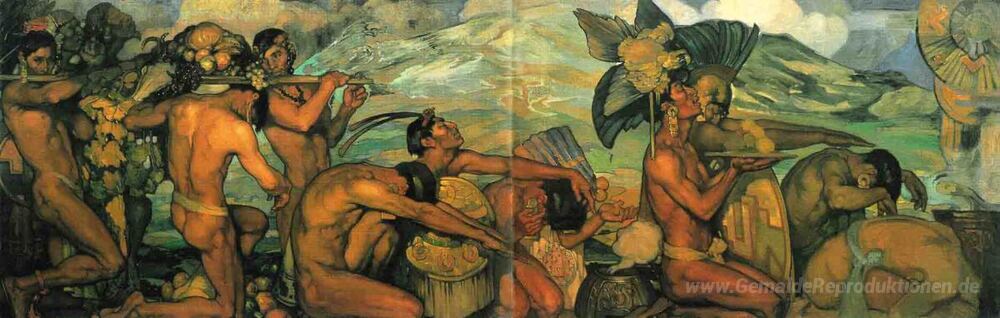 Wir bieten Ihnen eine handgefertigte Reproduktion auf Leinwand des berühmten Kunstwerks 'Nuestros dioses' von Saturnino Herran, aus dem Reproduktionsmuseum.
