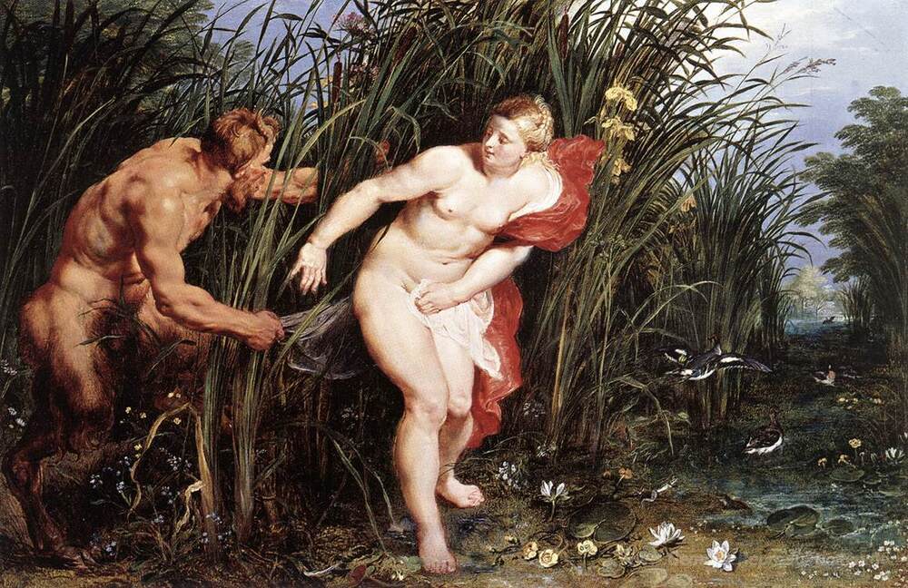 Wir bieten Ihnen eine handgefertigte Reproduktion auf Leinwand des berühmten Kunstwerks 'Pan und Syrinx' von Peter Paul Rubens, aus dem Reproduktionsmuseum.