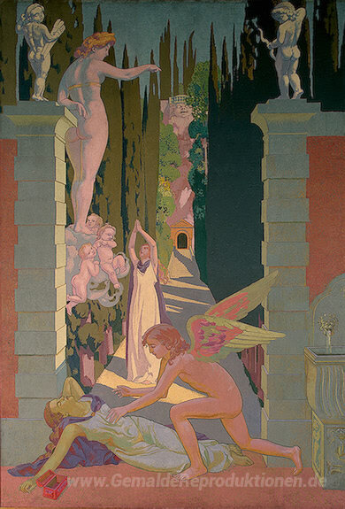 Wir bieten Ihnen eine handgefertigte Reproduktion auf Leinwand des berühmten Kunstwerks 'Panel 4. Die Rache der Venus' von Maurice Denis, aus dem Reproduktionsmuseum.
