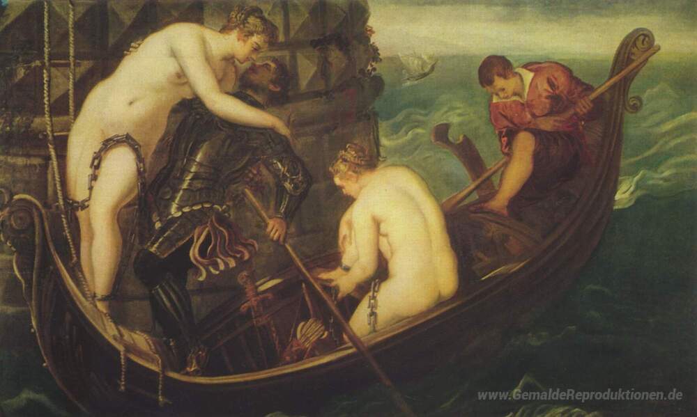 Wir bieten Ihnen eine handgefertigte Reproduktion auf Leinwand des berühmten Kunstwerks 'Rettung von Arsinoe' von Tintoretto, aus dem Reproduktionsmuseum.