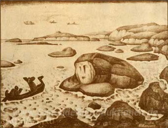 Wir bieten Ihnen eine handgefertigte Reproduktion auf Leinwand des berühmten Kunstwerks 'Riesin Krimgerd' von Nicholas Roerich, aus dem Reproduktionsmuseum.