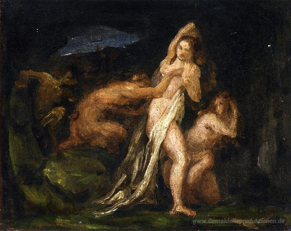 Wir bieten Ihnen eine handgefertigte Reproduktion auf Leinwand des berühmten Kunstwerks 'Satyres und Nymphen' von Paul Cezanne, aus dem Reproduktionsmuseum.
