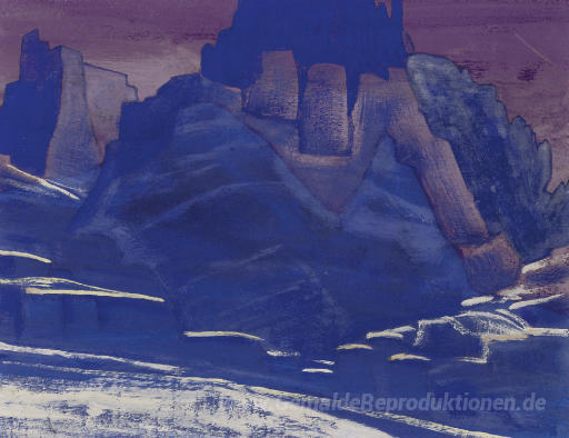 Wir bieten Ihnen eine handgefertigte Reproduktion auf Leinwand des berühmten Kunstwerks 'Schloss von König Gesar' von Nicholas Roerich, aus dem Reproduktionsmuseum.