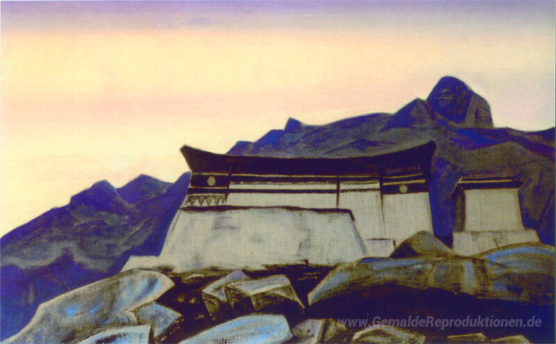 Wir bieten Ihnen eine handgefertigte Reproduktion auf Leinwand des berühmten Kunstwerks 'Schloss von König Gesar' von Nicholas Roerich, aus dem Reproduktionsmuseum.