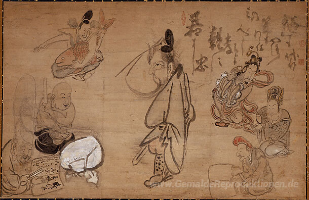 Wir bieten Ihnen eine handgefertigte Reproduktion auf Leinwand des berühmten Kunstwerks 'Sieben Götter Glück' von Hakuin Ekaku, aus dem Reproduktionsmuseum.