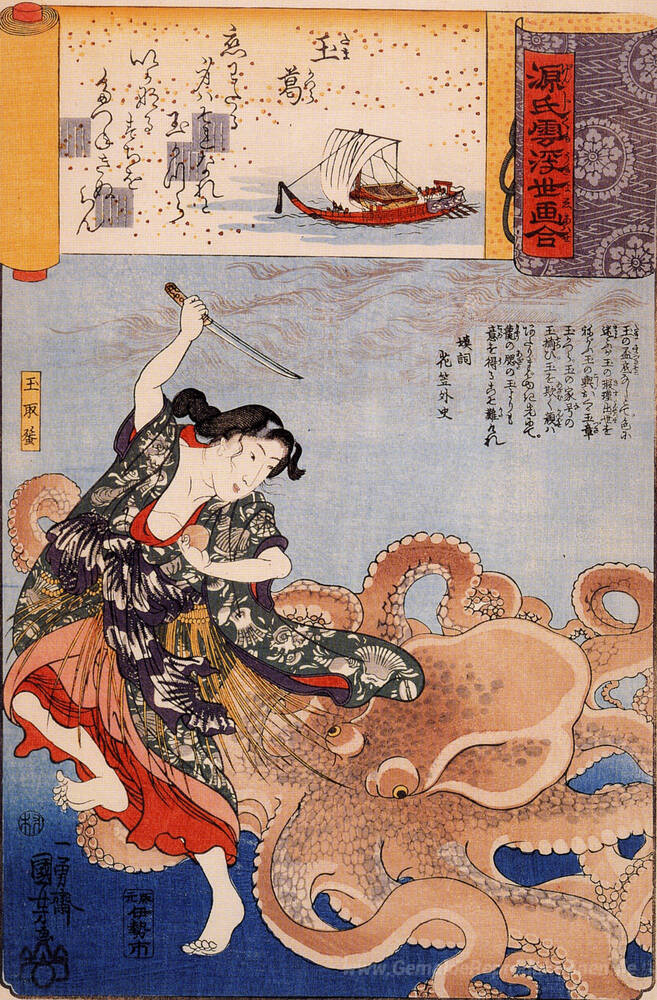 Wir bieten Ihnen eine handgefertigte Reproduktion auf Leinwand des berühmten Kunstwerks 'Tamakatzura Tamatori von der Krake angegriffen' von Utagawa Kuniyoshi, aus dem Reproduktionsmuseum.