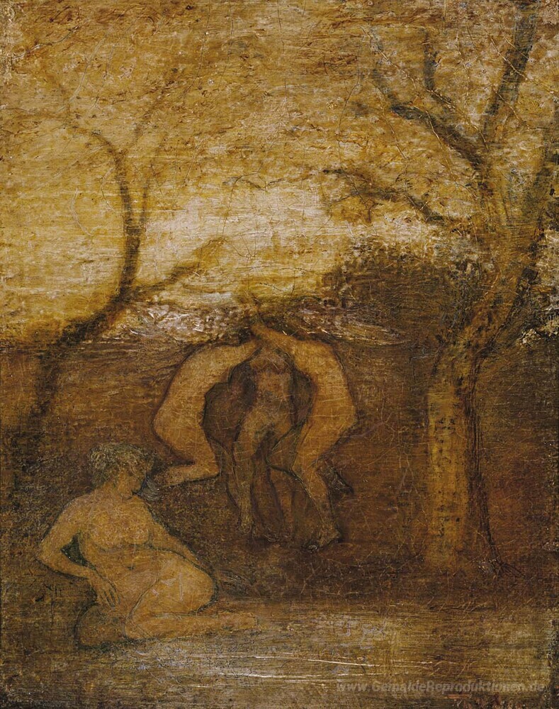 Wir bieten Ihnen eine handgefertigte Reproduktion auf Leinwand des berühmten Kunstwerks 'Tanzen Dryaden' von Albert Pinkham Ryder, aus dem Reproduktionsmuseum.