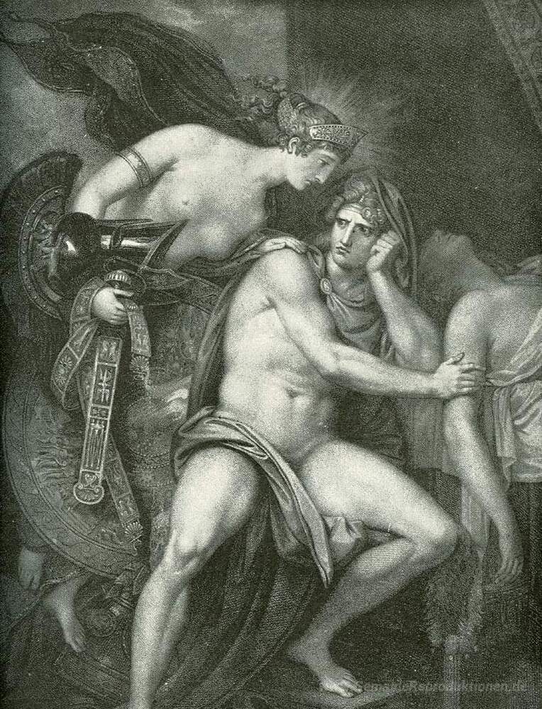 Wir bieten Ihnen eine handgefertigte Reproduktion auf Leinwand des berühmten Kunstwerks 'Thetis Bringing the Rüstung Achilles' von Benjamin West, aus dem Reproduktionsmuseum.