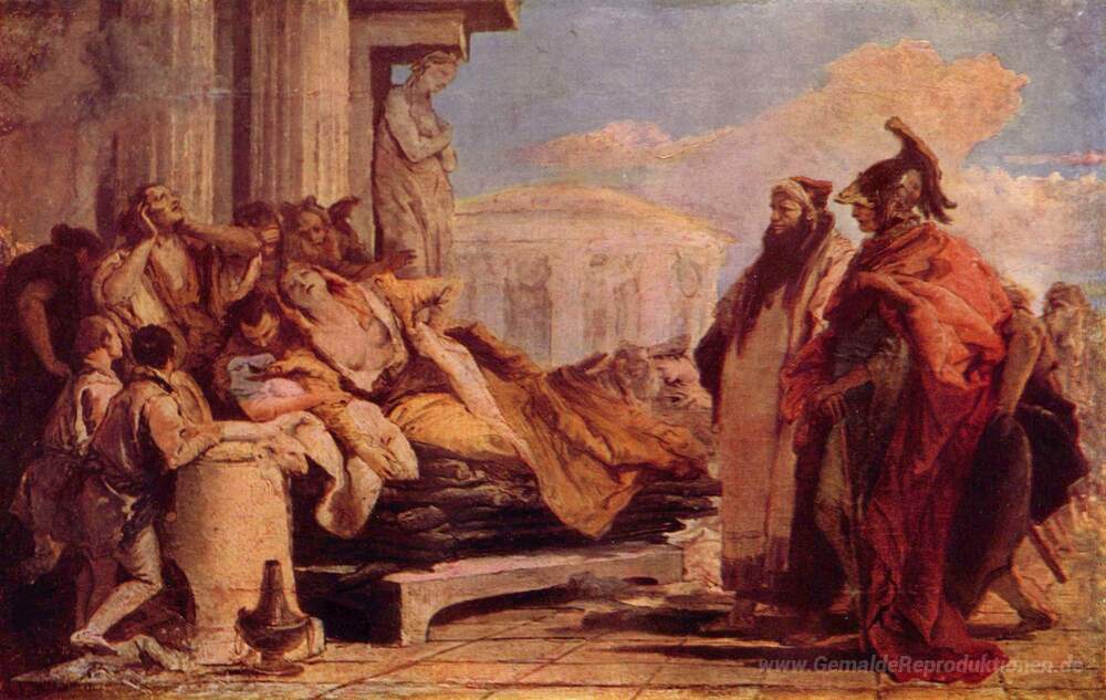 Wir bieten Ihnen eine handgefertigte Reproduktion auf Leinwand des berühmten Kunstwerks 'Tod von Dido' von Giovanni Battista Tiepolo, aus dem Reproduktionsmuseum.