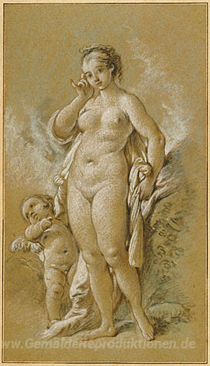 Wir bieten Ihnen eine handgefertigte Reproduktion auf Leinwand des berühmten Kunstwerks 'Venus und Amor' von Francois Boucher, aus dem Reproduktionsmuseum.