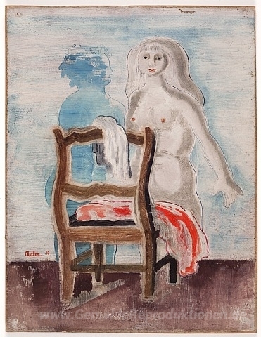 Wir bieten Ihnen eine handgefertigte Reproduktion auf Leinwand des berühmten Kunstwerks 'Akt mit Stuhl und rotem Tuch' von Jankel Adler, aus dem Reproduktionsmuseum.