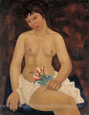 Wir bieten Ihnen eine handgefertigte Reproduktion auf Leinwand des berühmten Kunstwerks 'Akt mit Tulpen' von Christopher Wood, aus dem Reproduktionsmuseum.