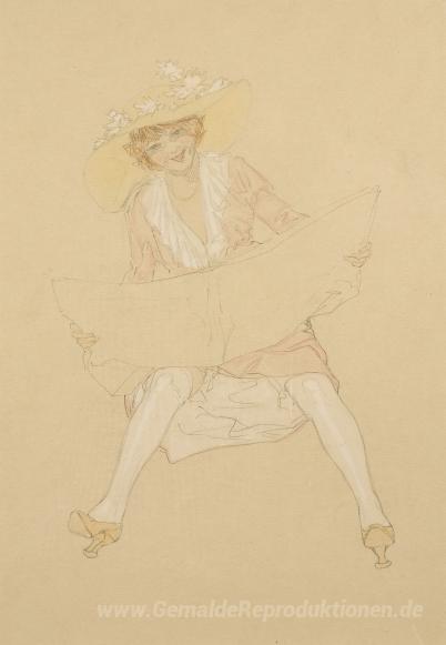 Wir bieten Ihnen eine handgefertigte Reproduktion auf Leinwand des berühmten Kunstwerks 'Aktzeichnungen' von Raphael Kirchner, aus dem Reproduktionsmuseum.