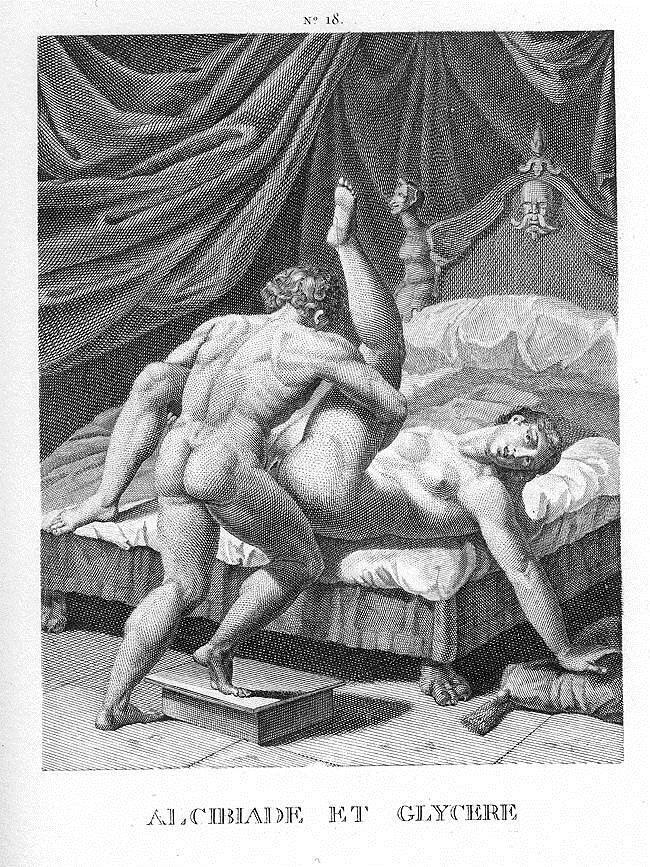 Wir bieten Ihnen eine handgefertigte Reproduktion auf Leinwand des berühmten Kunstwerks 'Alcibiade und Glycere' von Agostino Carracci, aus dem Reproduktionsmuseum.