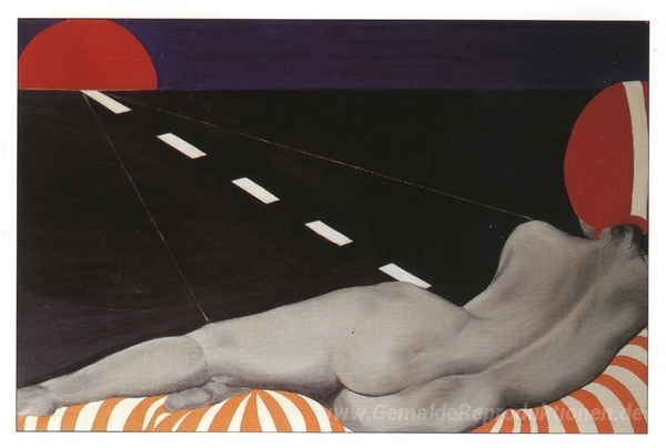Wir bieten Ihnen eine handgefertigte Reproduktion auf Leinwand des berühmten Kunstwerks 'Auto-Stop' von Evelyne Axell, aus dem Reproduktionsmuseum.