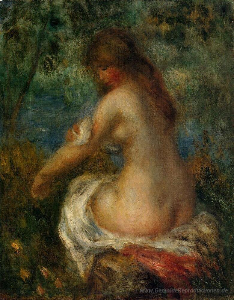 Wir bieten Ihnen eine handgefertigte Reproduktion auf Leinwand des berühmten Kunstwerks 'Badende' von Pierre-Auguste Renoir, aus dem Reproduktionsmuseum.