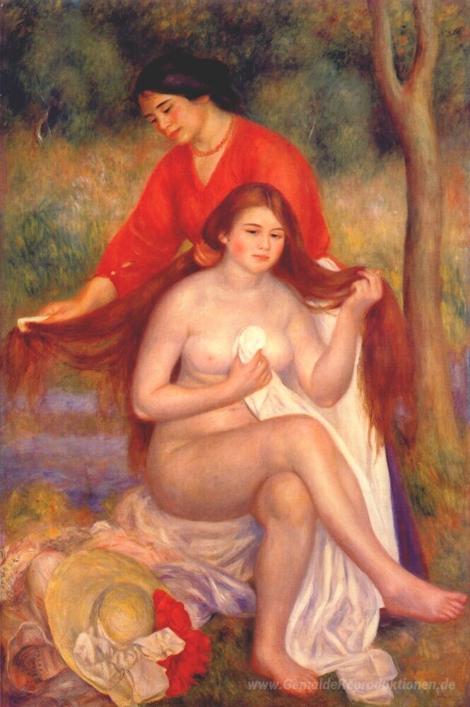 Wir bieten Ihnen eine handgefertigte Reproduktion auf Leinwand des berühmten Kunstwerks 'Badende und Magd (Das WC)' von Pierre-Auguste Renoir, aus dem Reproduktionsmuseum.