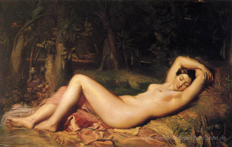 Wir bieten Ihnen eine handgefertigte Reproduktion auf Leinwand des berühmten Kunstwerks 'Baigneuse endormie' von Theodore Chasseriau, aus dem Reproduktionsmuseum.