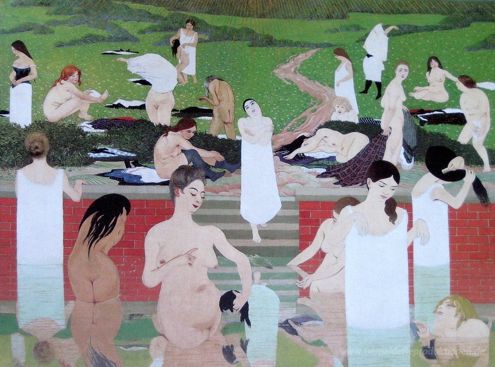Wir bieten Ihnen eine handgefertigte Reproduktion auf Leinwand des berühmten Kunstwerks 'Das Bad, Sommerabend' von Felix Vallotton , aus dem Reproduktionsmuseum.