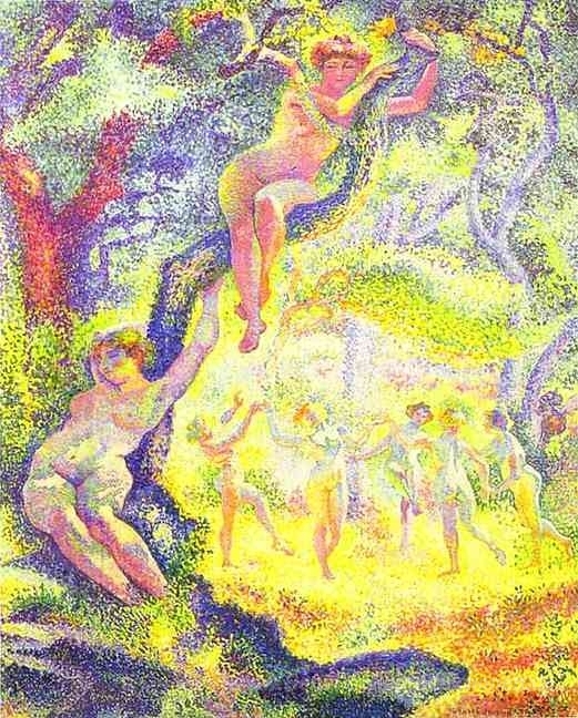 Wir bieten Ihnen eine handgefertigte Reproduktion auf Leinwand des berühmten Kunstwerks 'Das Clearing-' von Henri-Edmond Cross, aus dem Reproduktionsmuseum.