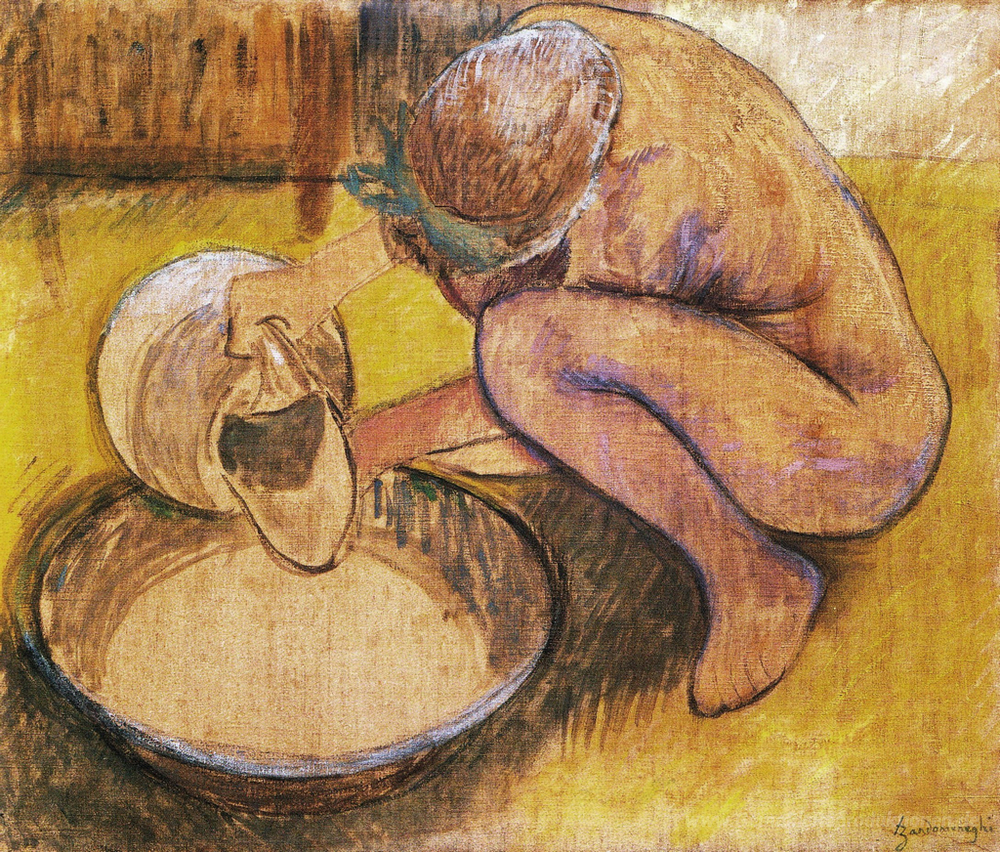 Wir bieten Ihnen eine handgefertigte Reproduktion auf Leinwand des berühmten Kunstwerks 'Der Waschtrog' von Federico Zandomeneghi, aus dem Reproduktionsmuseum.