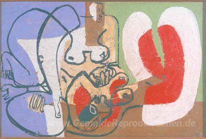 Wir bieten Ihnen eine handgefertigte Reproduktion auf Leinwand des berühmten Kunstwerks 'Deux femmes au repos' von Le Corbusier, aus dem Reproduktionsmuseum.