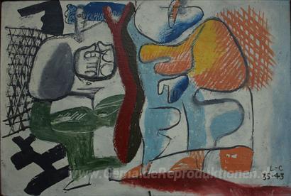Willkommen in unserer erlesenen Sammlung von Ölgemälden, die die Zeit überdauern. Entdecken Sie das faszinierende Werk Deux femmes debout (au tronc d'arbre) des renommierten Künstlers Le Corbusier, das nahtlos die Grenzen zwischen Kunst und Architektur überwindet. Le Corbusier, ein Pionier des modernen Designs, bringt mit seiner einzigartigen Komposition und Farbauswahl eine frische Perspektive in das Genre der Malerei.