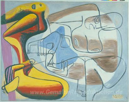 Wir bieten Ihnen eine handgefertigte Reproduktion auf Leinwand des berühmten Kunstwerks 'Deux Zahlen' von Le Corbusier, aus dem Reproduktionsmuseum.