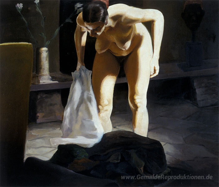 Sein unverwechselbarer Stil kombiniert figurative Darstellungen mit einer tiefen psychologischen Einsicht, wodurch eine intensive Atmosphäre entsteht, die jeden Raum bereichert. Die gekonnte Anwendung von Farben und Licht verstärkt die Wirkung des Gemäldes und schafft eine einladende, zugleich nachdenkliche Umgebung. Lassen Sie Die Reise von romanisch, Szene IV zum Herzstück Ihres Wohnraums werden und erleben Sie, wie es die Stimmung und die Wahrnehmung Ihres Zuhauses transformiert.
