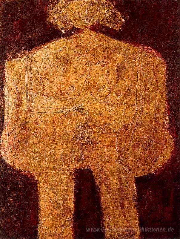Wir bieten Ihnen eine handgefertigte Reproduktion auf Leinwand des berühmten Kunstwerks 'Die schönen schweren Brüsten' von Jean Dubuffet, aus dem Reproduktionsmuseum.