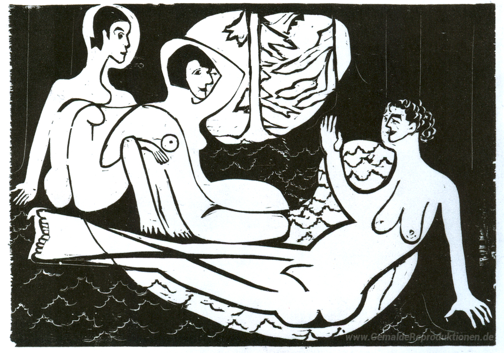 Wir bieten Ihnen eine handgefertigte Reproduktion auf Leinwand des berühmten Kunstwerks 'Drei Akte im Wald' von Ernst Ludwig Kirchner, aus dem Reproduktionsmuseum.