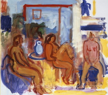 Wir bieten Ihnen eine handgefertigte Reproduktion auf Leinwand des berühmten Kunstwerks 'Drei Akte in vor einem Bildschirm' von Robert De Niro, Sr., aus dem Reproduktionsmuseum.