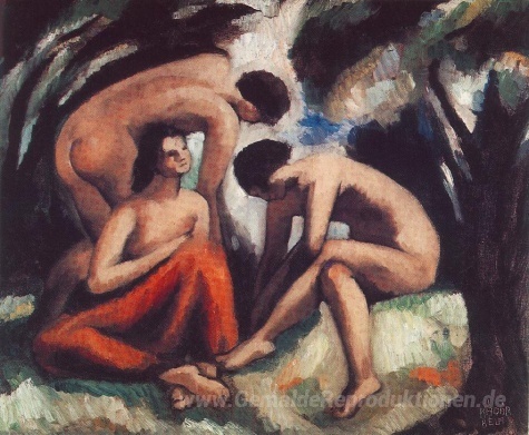 Wir bieten Ihnen eine handgefertigte Reproduktion auf Leinwand des berühmten Kunstwerks 'Drei Akte' von Bela Kadar, aus dem Reproduktionsmuseum.