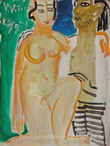Wir bieten Ihnen eine handgefertigte Reproduktion auf Leinwand des berühmten Kunstwerks 'Ein Künstler und sein Modell' von Ding Yanyong, aus dem Reproduktionsmuseum.