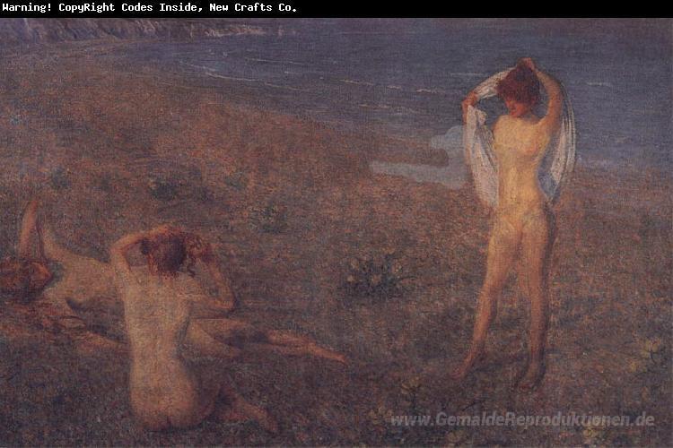Wir bieten Ihnen eine handgefertigte Reproduktion auf Leinwand des berühmten Kunstwerks 'Ein Sommer-Abend-' von Philip Wilson Steer, aus dem Reproduktionsmuseum.