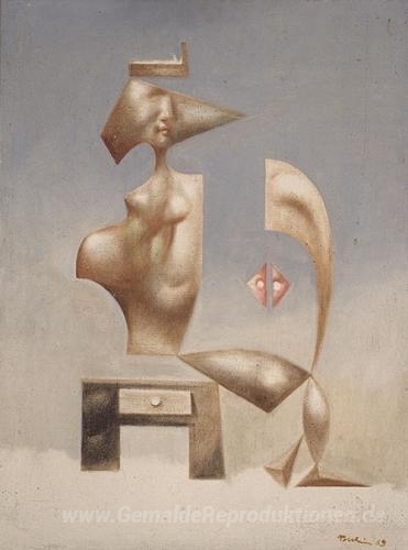 Wir bieten Ihnen eine handgefertigte Reproduktion auf Leinwand des berühmten Kunstwerks 'Eine surrealistische Zusammensetzung' von Jules Perahim, aus dem Reproduktionsmuseum.