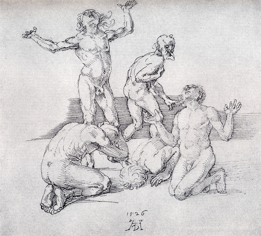 Wir bieten Ihnen eine handgefertigte Reproduktion auf Leinwand des berühmten Kunstwerks 'Fünf Male Nudes' von Albrecht Durer, aus dem Reproduktionsmuseum.