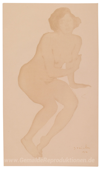 Wir bieten Ihnen eine handgefertigte Reproduktion auf Leinwand des berühmten Kunstwerks 'Femme Assise Nu' von Theophile Steinlen, aus dem Reproduktionsmuseum.