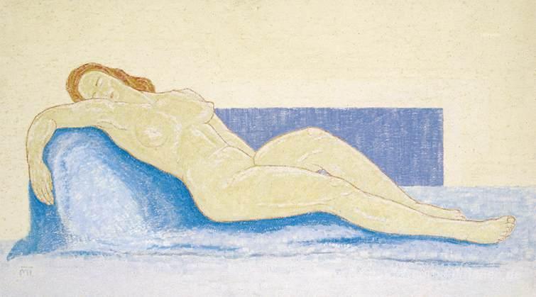 Wir bieten Ihnen eine handgefertigte Reproduktion auf Leinwand des berühmten Kunstwerks 'Frau auf einem blauen Divan' von Janos Mattis-Teutsch, aus dem Reproduktionsmuseum.