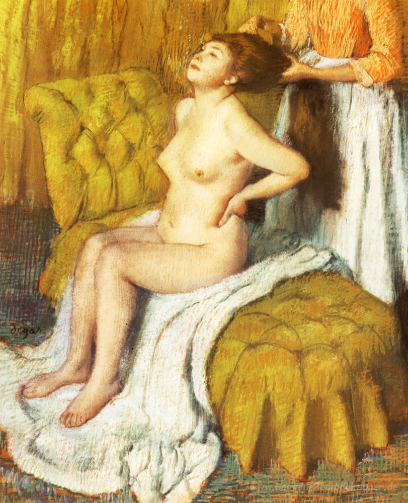 Wir bieten Ihnen eine handgefertigte Reproduktion auf Leinwand des berühmten Kunstwerks 'Frau, die ihr Haar kämmten' von Edgar Degas, aus dem Reproduktionsmuseum.
