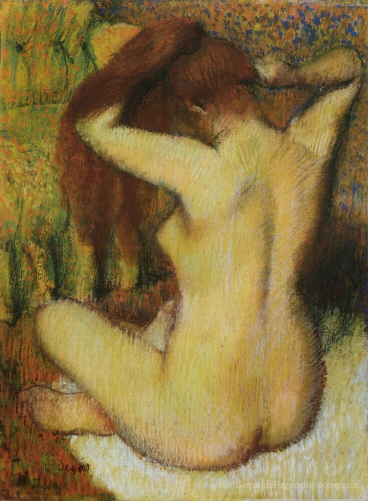 Wir bieten Ihnen eine handgefertigte Reproduktion auf Leinwand des berühmten Kunstwerks 'Frau, die ihr Haar' von Edgar Degas, aus dem Reproduktionsmuseum.