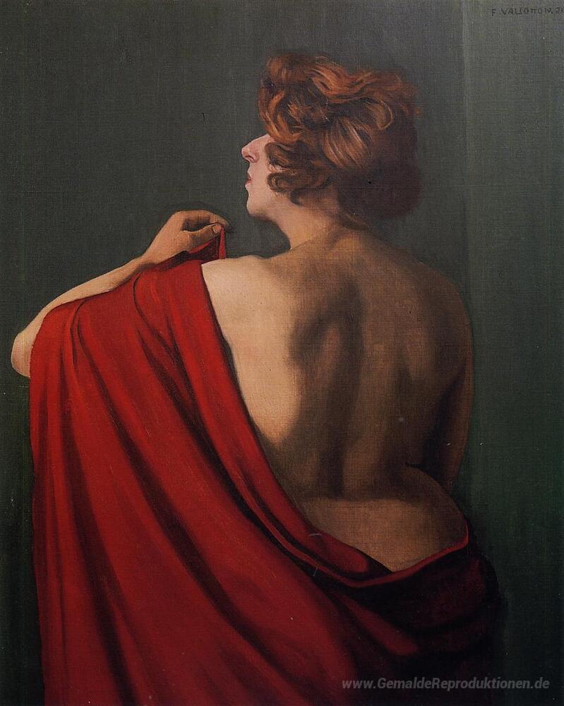 Wir bieten Ihnen eine handgefertigte Reproduktion auf Leinwand des berühmten Kunstwerks 'Frau mit rotem Schal' von Felix Vallotton , aus dem Reproduktionsmuseum.